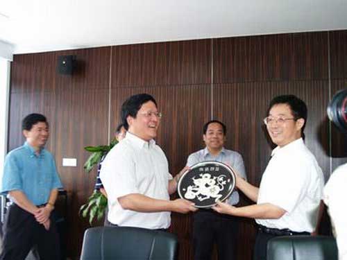 张泰城代表学校向同济大学领导赠送纪念品 张泰城、罗学渭等与同济大学