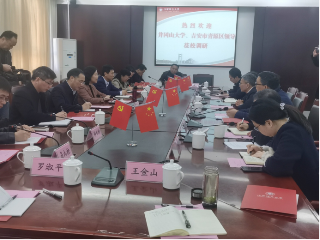 3月9日,校党委书记胡春晓、青原区区委书记匡晓卫联合率领学习考察组,深入江西师范大学和南昌航空大学专题调研校地合作共建附属学校有关工作,校党委副书记刘祖文、青原区副区长龙艳华、张毓卿参加调研活动,党委宣传部、人事处、教务处、对外联络中心负责人和青原区教体局、井大附中负责人陪同调研。