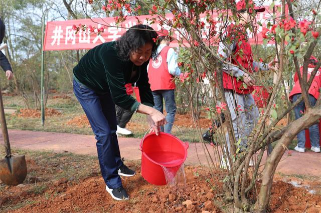 10日下午,党委统战部组织学校各民主党派、统战团体的统一战线成员代表30余人在十栋教学楼前开展“共植同心林 共画同心圆”义务植树活动。植树现场,统一战线各领域各战线代表种下了30株映山红树苗,也种下了象征着团结、成长、希望的映山红“同心林”,种下了老师们对美丽井大的憧憬,也种下了广大统一战线成员对井大发展的信心。