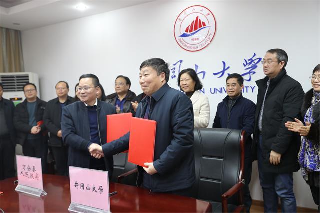1月13日,我校与万安县人民政府战略合作框架协议签订仪式在校举行,井冈山大学党委书记胡春晓,万安县委副书记、县长巫太明分别致辞,井冈山大学党委副书记刘祖文会见了巫太明一行,党委常委、副校长吕玉华与巫太明分别代表双方签约,井冈山大学党委常委、副校长肖宜安主持仪式,万安县副县长龚盛乐等出席,我校相关部门学院负责人以及万安县相关党政部门负责人参加了仪式。