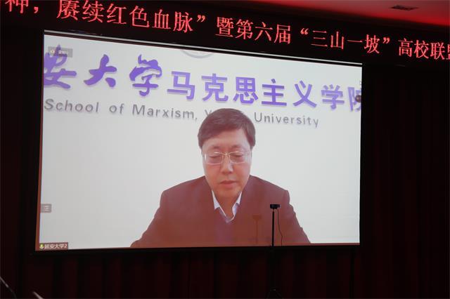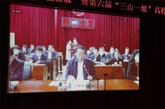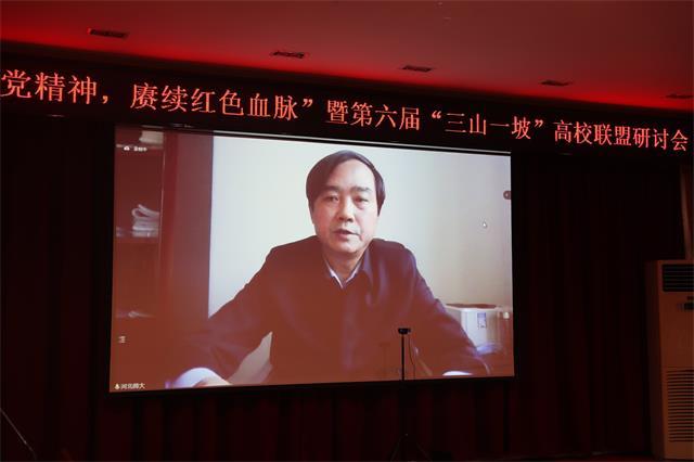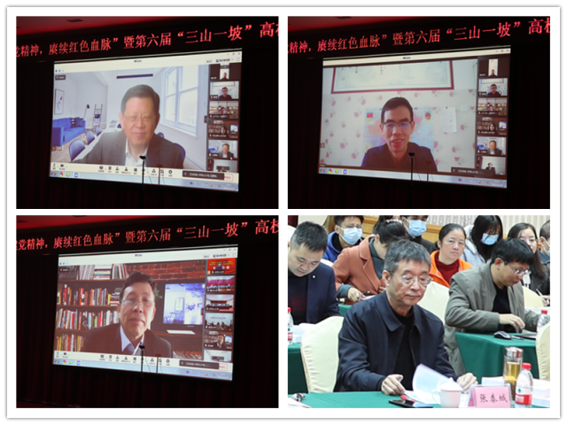 为深入学习贯彻习近平总书记“七一”重要讲话精神和党的十九届六中全会精神,12月4日,由延安大学、井冈山大学、河北师范大学、临沂大学主办的第六届“三山一坡”高校联盟弘扬革命精神研讨会在我校举行。我校党委书记胡春晓、临沂大学党委书记王焕良、延安大学党委书记张金锁、河北师范大学党委副书记霍丙泉分别致辞,临沂大学副校长崔晓红、延安大学副校长谭虎娃出席研讨会。“三山一坡”高校以及中国人民大学、武汉大学、南开大学、中南大学等高校的领导、专家学者、学生近200人相约“云端”,聚焦“弘扬伟大建党精神,赓续红色血脉”主题,就加强伟大建党精神与“三山一坡”革命精神研究,探讨革命老区高校在新时代新征程中的历史使命,建设“三山一坡”高校联盟命运共同体进行研讨交流。我校党委副书记刘祖文和党委常委、副校长陈小林分别主持会议。