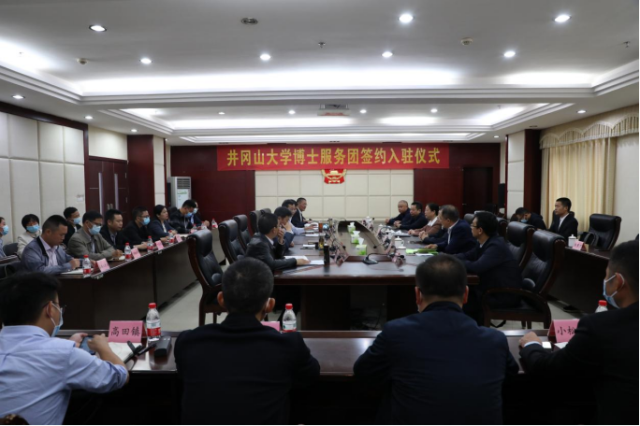 10月19日,井冈山大学博士服务团入驻石城县工业园管委会博士工作站签约仪式在石城县举行。校党委书记胡春晓,党委常委、副校长吕玉华,石城县委副书记、县长张小川和县领导钟本祥、李明海、宁雄、黄建伟出席签约仪式,吕玉华和石城县常务副县长李明海分别代表双方在协议书上签字,县长张小川为入驻博士颁发聘书,石城县委常委、组织部长钟本祥主持签约仪式。井冈山大学化学化工学院负责人和入站博士,石城县各乡镇和相关部门、企业主要负责人参加仪式。
