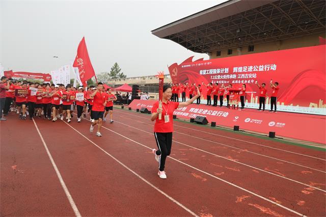 启动仪式后,举行了辉煌足迹火炬传承跑仪式,冯连世将“辉煌足迹·火炬传承”会旗交给赛事地代表周密。郭美荐、冯连世、胡春晓、周密、张雪黎、陆浩、沈冬生手持火炬共同点燃主火炬。周密宣布活动开始,胡春晓手持火炬,领跑第一棒,7名优秀教职工代表手持火炬领跑,井冈山大学900余名大学生志愿者紧随其后,环校慢跑7.1公里,共同庆祝中国共产党成立100周年,迎接新中国72华诞。