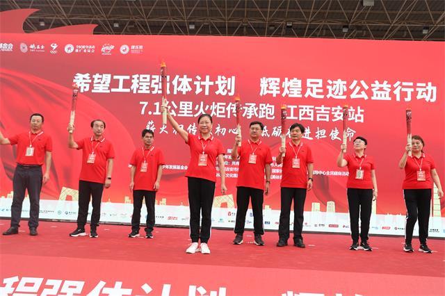 9月29日下午,由共青团中央指导,中国青少年发展基金会、北京姚基金公益基金会、国家体育总局社会体育指导中心、国家体育总局社会体育指导中心全民健身活动推广委员会、康连接体育文化集团有限公司共同发起,由共青团江西省委、吉安市人民政府、井冈山大学联合主办,江西省青少年发展基金会、共青团吉安市委、吉安市教体局承办,由北京筑美体育资讯有限公司具体执行的“希望工程·强体计划”辉煌足迹公益行动在我校启动,姚基金希望小学篮球季启动仪式、青少年教育培训基地签约仪式和辉煌足迹火炬传承跑仪式同时举行。中国青少年发展基金会党委书记、理事长郭美荐,国家体育总局社会体育指导中心主任冯连世,井冈山大学党委书记胡春晓,北京姚基金公益基金会副理事长陆浩,国家体育总局社会体育指导中心全民健身活动推广委员会副主任、中国龙狮运动协会主席沈冬生,团省委二级巡视员张雪黎,江西省青少年发展基金理事长毛鸿山,吉安市人民政府领导周密,井冈山大学党委常委、副校长刘利民,北京姚基金公益基金会秘书长叶大伟,康连接体育文化集团有限公司总裁杨鹏等出席启动仪式。周密致欢迎辞,郭美荐、冯连世、张雪黎、陆浩、沈冬生、杨鹏按动启动球启动活动,团吉安市委副书记王亮主持启动仪式。