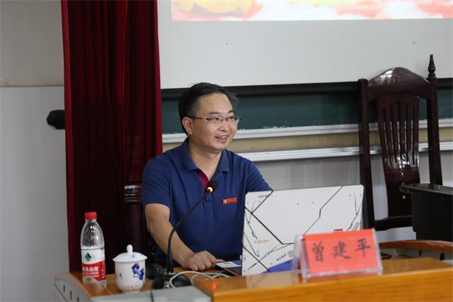曾建平的讲课题为《回望百年路启航新征程——学习贯彻习近平总书记“七一”重要讲话精神》,他结合自身学习习近平总书记“七一”重要讲话精神思考与体会。通过详实数据和丰富案例,从如何总体解读“七一”重要讲话精神、如何把握“七一”重要讲话精神要义、如何贯彻落实“七一”重要讲话精神等三个维度,并围绕深刻理解马克思主义为什么“行”、中国共产党为什么“能”、中国特色社会主义为什么“好”、信仰的味道为什么“甜”、艰苦奋斗的本色为什么“美”、党的靠山和底气为什么“强”等六个方面,深刻阐释了“七一”重要讲话的重大意义和丰富内涵,深入解读了伟大建党精神的深刻内涵和时代价值。