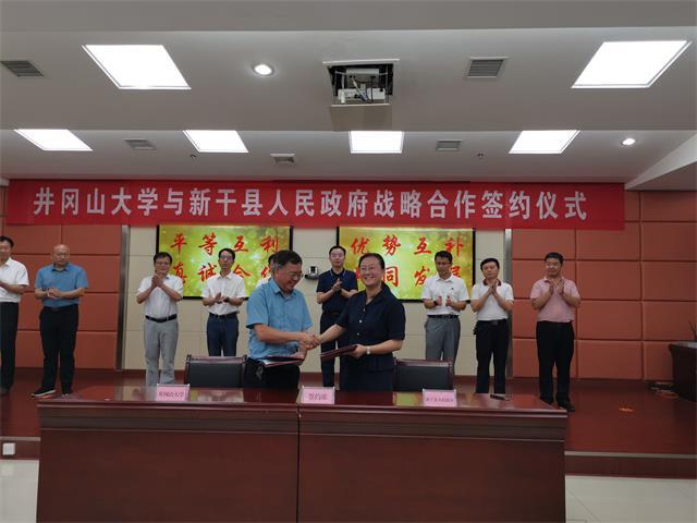 7月20日,井冈山大学与新干县人民政府战略合作协议在新干县签订。井冈山大学党委副书记、校长曾建平,党委常委、副校长陈小林,新干县委书记邓永翔,县委副书记、县长胡军和县领导周贵根、钟海林及有井冈山大学相关职能部门负责人出席签约仪式,陈小林和副县长周晓霞分别代表双方在协议书上签字。新干县委常委、宣传部长龚淑华主持仪式。
