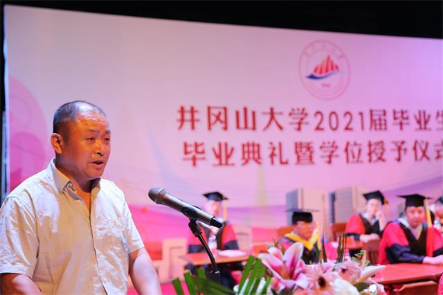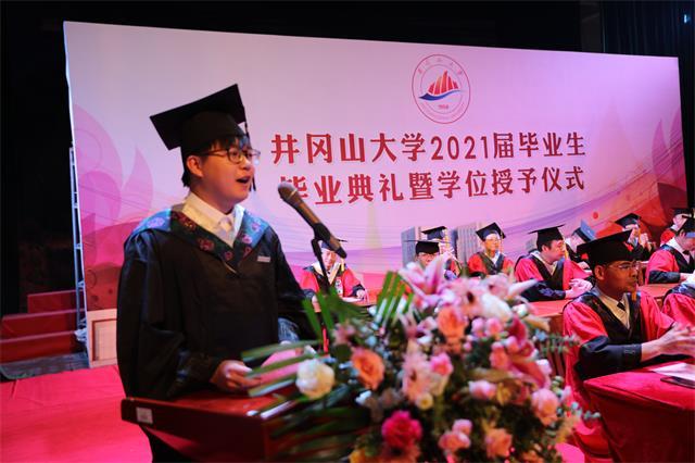 毕业生代表、生命科学学院学生赵延宽说,井大教会了坚持内心的宁静、坚定自己的热爱和坚守家国情怀的初心。“坚定执着追理想、实事求是闯新路、艰苦奋斗攻难关、依靠群众求胜利”的井冈山精神是井大留给毕业生永不褪色的精神烙印,“广学坚守、勤思敏行”的校训将伴随着毕业生乘风破浪,勇往直前。