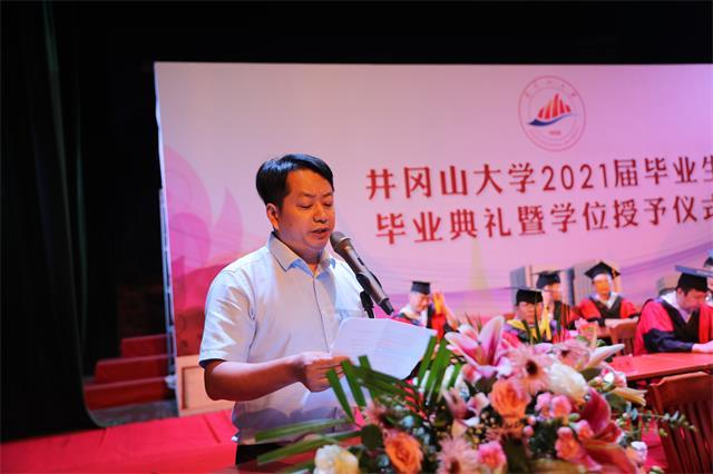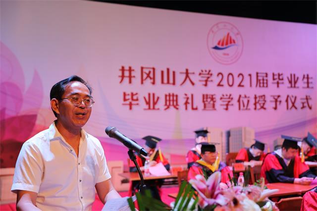 曾建平说,几年来,同学们从青涩走向成熟,在学习上求知若渴,在生活中自立自强,在情感上相互吸引,在思想上志同道合,既培养了纯真的同学之情,也结下了可贵的患难之交,看着同学们在快乐中成长,在磨砺中成才,作为校长和任课教师,感到十分欣慰和自豪。这几年,井大也与你们共同成长:学校申硕攻坚取得关键性突破,你们是全程参与者;学校在六十甲子诞辰中接续奋斗,你们是光荣见证者;在央视春晚井冈山分会场舞台成功展现“负得了重、扛得了冻”的井大品格,你们是倾情塑造者;学校启用新图书馆、建设新教学楼、打造温馨食堂、引进共享电动车,你们是亲身体验者;学校转型发展、优化结构、推进治理体系与治理能力现代化,你们是坚定支持者……是你们为学校注入了青春活力,为学校发展疯狂“打CALL”,推动学校事业砥砺前行。
