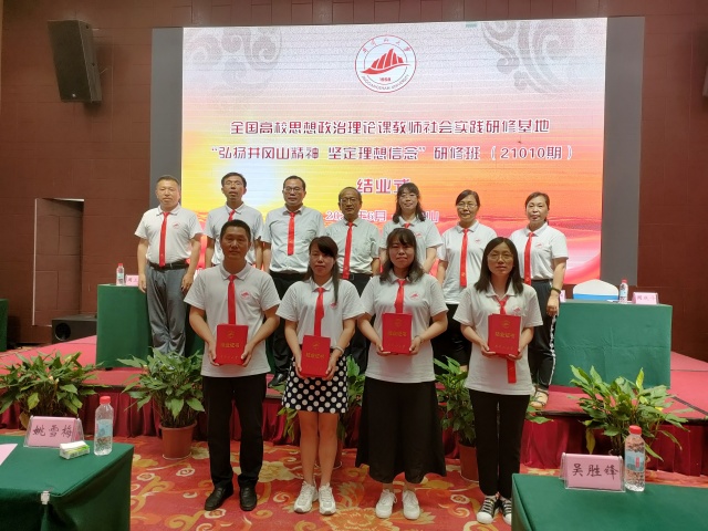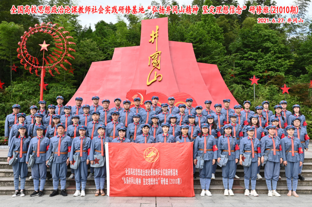 研修班时间为为6月22日至28日。在为期七天的学习中,全体思政课教师聆听了曾建平教授的《从党的百年历史中汲取智慧和力量》和李忠教授的《井冈山斗争与井冈山精神》专题报告,他们先后来到永新三湾、龙江书院、茅坪八角楼、井冈山革命烈士陵园、黄洋界和小井红军烈士墓等现场教学点进行学习,重温了那段艰苦卓绝的历史,感悟了伟大的井冈山精神。在三湾改编旧址群,学员们感受红枫树下铸军魂的光辉历史;在龙江书院前,学员们聆听朱德、毛泽东会师的艰难过程,感慨当年的军队在如此艰苦的条件下仍坚持学习;在八角楼上,学员们追忆毛主席在微弱的灯光下完成《中国的红色政权为什么能够存在?》《井冈山的斗争》两篇光辉著作的情景;在庄严肃穆的井冈山革命烈士陵园,学员们敬献花圈并重温了入党誓词,深切缅怀井冈山革命斗争时期牺牲的四万八千多名革命烈士;在险峻的黄洋界,学员们聆听老师讲述战争场景,感受依靠群众求胜利的精神力量;在挑粮小道窄窄的山路上,学员们寻找朱德军长、毛泽东委员长亲自挑粮的足迹,深受教育和鼓舞;在荆竹山红色户外拓展,感受纪律严明的团队精神。在埋葬130多位英雄的小井红军烈士墓旁,学员们表达了沉痛的哀思。在红军后代访谈时,学员们被革命先辈的英雄事迹深深震撼。
