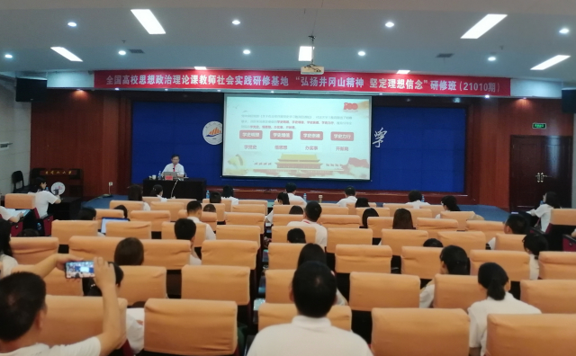 6月23日,由教育部社科司主办,全国高校思想政治理论课教师社会实践研修基地(井冈山大学)“弘扬井冈山精神 坚定理想信念”研修班在我校开班,来自全国部分高校的60位思政课教师参加了此次研修班。校党委副书记、校长曾建平为研修班致辞并授旗。