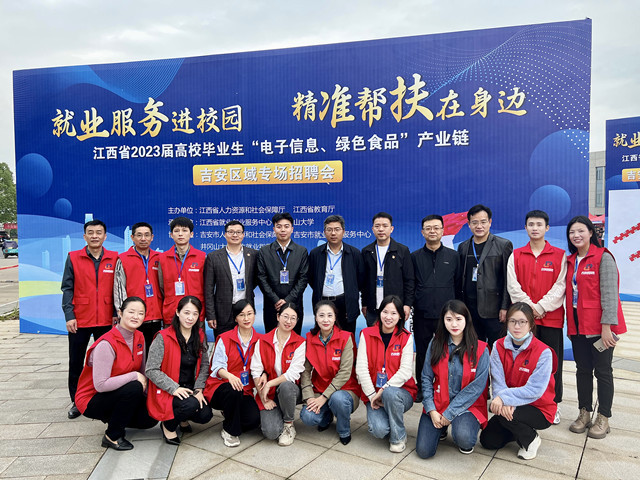 4月28日,由江西省人力资源和社会保障厅、江西省教育厅主办,吉安市就业创业服务中心和我校联合承办的“江西省2023届高校毕业生‘电子信息、绿色食品’产业链吉安区域专场暨访企拓岗专场招聘会”在映山红广场成功举办。党委常委、副校长冷明,吉安市人社局党组副书记、就业创业服务中心主任刘昌荣以及吉安市各县区就业创业中心负责人参加招聘活动。
