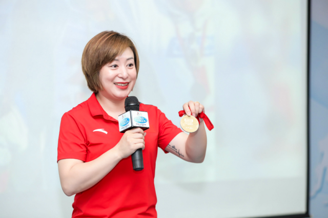 开营仪式上,中国首位滑雪世界冠军郭丹丹与参训师生们亲切互动,并分享自己的冬奥故事。