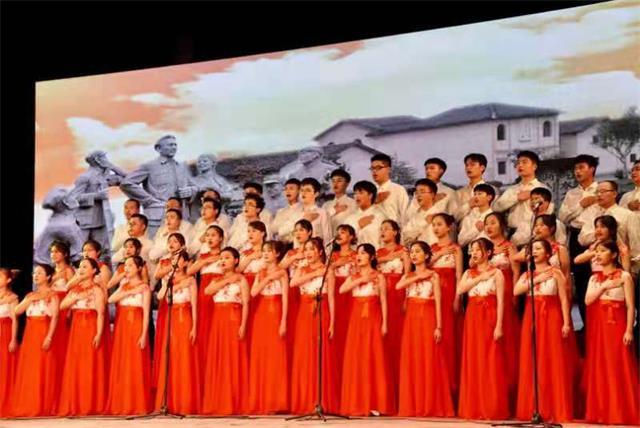 晚会最后,现场1000余名师生在一片鲜艳的党旗国旗摇曳声中齐唱了《没有共产党就没有新中国》,全场师生用高亢嘹亮的歌声为党的百岁华诞献礼。