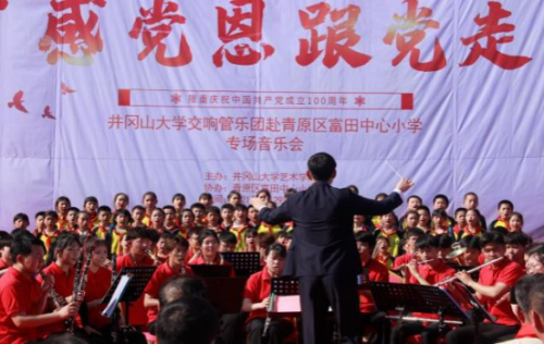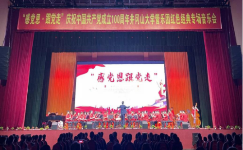 近日,在井冈山经济技术开发区吉安外国语实验学校,由井冈山大学艺术学院带来的“感党恩·跟党走”红色经典专场音乐会精彩上演,吸引了该校青少年学子1600余人观看演出。