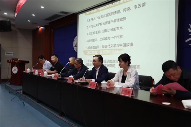 活动中,曾建平向与会人员简要介绍了井冈山大学历史沿革、学科建设和特色亮点以及坚持以井冈山精神办学育人有关情况,并对作家们走进井大开展文学指导创作表示感谢。鲁迅文学奖获得者、北京市作协副主席刘庆邦结合他的创作经验,畅谈了短篇小说的创作方法和技巧。中国人民解放军文艺大奖、中宣部五个一工程奖获得者陶纯联系实际情况以“怎样成为一个作家”为题,分享了成为一名作家所需要的生活、思想和艺术准备。知名评论家、《小说选刊》副主编李云雷谈了对新时代文学的理解,就“如何讲述新的中国故事”表达了自己的看法。