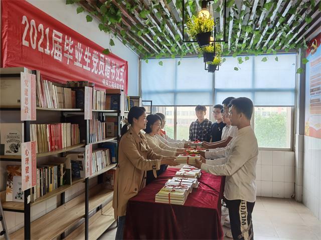 5月18日,学院组织2021届毕业生党员在学院学生宿舍共享图书角开展“赠一缕书香,留一份真情”赠书活动,捐赠书籍共计180余本。学院号召全院毕业生党员在离校前自愿将各自考研、考公等学习成长书籍赠予学院,供学生借阅,不仅丰富了共享图书角的图书资源,又为毕业生提供了减负行囊、贡献力量和回报母校的平台。