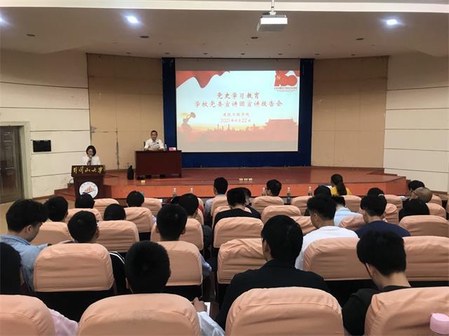 在教育学院和化学化工学院,宣讲团成员、党委常委、统战部长肖洪海指出,学习党的历史,是坚持和发展中国特色社会主义,把党和国家各项事业继续推向前进的必修课,这门功课不仅必修,而且必须修好;中国革命历史是最好的营养剂,重温这部伟大历史能够受到党的初心使命、性质宗旨、理想信念的生动教育。
