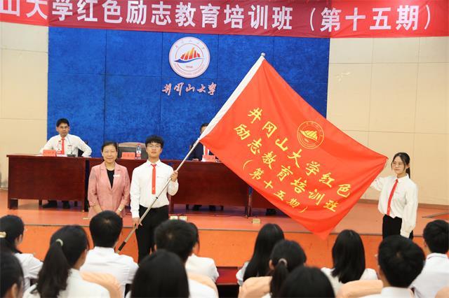 4月24日下午,我校红色励志教育培训班(第十五期)举行开班仪式。校党委书记胡春晓出席并为第十五期红色励志班授旗,党委副书记、校长曾建平出席并讲话,党委常委、副校长刘利民主持仪式,学生工作部(处)相关人员、带队辅导员、辅导员助理以及本期培训班全体学员参加了开班仪式。