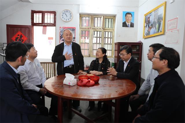 走进潭头村,绿树成荫,流水淙淙,一排排极富特色的新建房屋鳞次栉比,富有当地特色的墙绘引人入胜。胡春晓、曾建平以及全体中心组成员信步走入老红军后代孙观发老人家中,听取了孙观发老人一家在习近平总书记亲自关怀下脱贫奔小康的致富故事。孙观发由衷的感谢党和国家的好政策让老百姓在衣食住行等各方面都发生了翻天覆地的变化,孙观发老人表示要永远听党话、感党恩、跟党走。