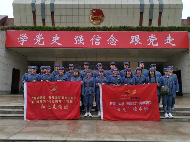 为深化党史学习教育,传承红色基因,坚定理想信念。校团委组织映山红青年学院“四史”读书班组建“寻路”红色走读探访团,结合团中央“青春向党奋斗强国”网络直播活动安排,于4月6日-7日赴井冈山开展红色寻访活动,引导青年学生厚植爱党、爱国、爱社会主义的情感,让红色基因、革命薪火代代传承。
