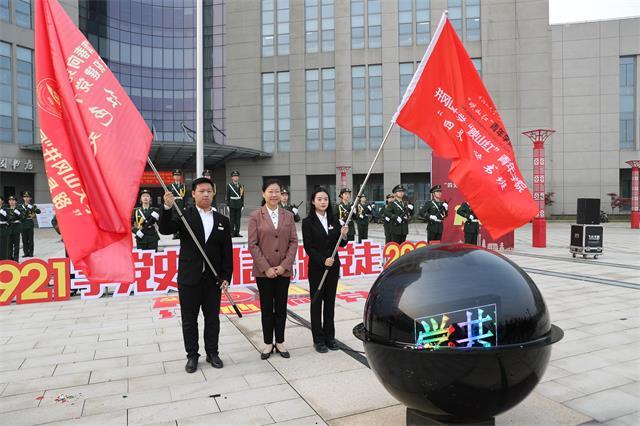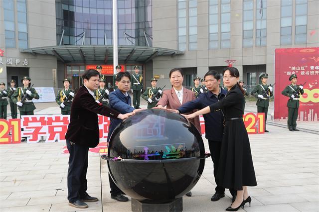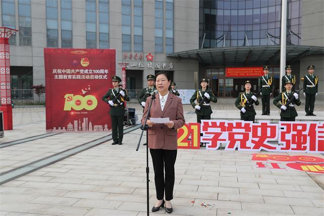 升旗仪式后,胡春晓、刘利民等校领导与有关部门负责人一同按下了启动球,标志着庆祝建党100周年主题教育实践活动正式启动,校团委负责人宣读了活动方案。