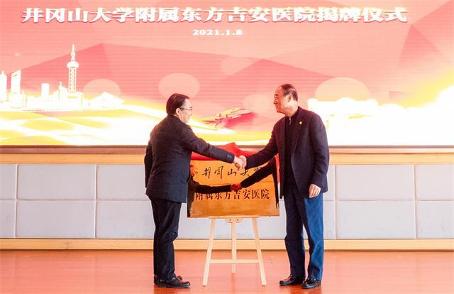 1月8日下午,井冈山大学附属东方吉安医院揭牌仪式在上海市东方医院吉安医院举行。我校党委书记胡春晓出席揭牌仪式,校党委副书记、校长曾建平,同济大学附属东方医院院长、上海市东方医院吉安医院党委书记、院长刘中民共同为井冈山大学附属医院东方吉安医院揭牌。同济大学东方临床医学院常务副院长、上海市东方医院吉安医院执行院长时军主持揭牌仪式,我校党委常委、副校长、医学部主任黄俭根,校长助理陈建军,东方医院吉安医院班子成员、全体职工、“东方班”学生以及我校医学部班子成员共同参加揭牌仪式。