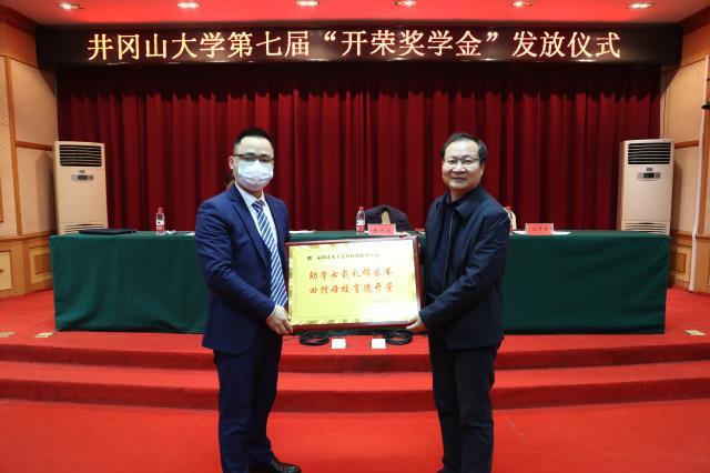 12月28日,学校举行第七届“开荣奖学金”发放仪式,深圳法天下法务科技有限公司董事长沈开荣,校党委常委、副校长黄俭根出席,黄俭根代表学校向沈开荣赠送了捐资荣誉锦牌,出席仪式的领导和嘉宾为50名贫困大学生颁发了5万元奖学金。