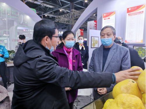 对接会期间,施小琳,省人大常委会副主任马志武、冯桃莲,省政府副省长吴浩、罗小云,省政协副主席谢茹、刘晓庄、刘卫平等领导先后来到我校展区参观指导。他们充分肯定了我校实施的“科技下山,成果入市”战略,深入一线在井冈山农高区成立“现代农业发展研究院”,产学研合作精准服务脱贫攻坚,要求学校进一步凸显特色发展,加强成果转化,更好地服务地方经济社会和行业发展。施小琳、马志武、冯桃莲、吴浩和谢茹还重点询问了我校百合种植产业助力莲花县脱贫攻坚情况,肯定了对有500多年种植历史的江西龙牙百合的提纯复壮工作,赞赏了水果百合的脆甜品质,肯定了我校百年好合学生团队开发百合速溶粉的创业以及帮助贫困户销售百合。施小琳还重点关注我校了数学埃舍尔艺术研究的应用情况。刘卫平重点询问了“基于本土资源的景区水污染控制及水质保护”技术及其应用情况,当得知该项成果最大特点是利用井冈山本土竹资源,肯定了团队在利用好井冈山丰富的生物资和保护好优良的生态环境质量中做的工作。罗小云再次关注了“井冈蜜柚全产业链服务地方情况”,表示对12月3日在井冈山农高区听取我校研究人员介绍的井冈蜜柚无病毒母本印象深刻,并详细询问了井冈蜜柚良种三级繁育体系;刘晓庄肯定了我校围绕井冈蜜柚品种纯化开展的优良母株筛选、脱毒和推广工作。