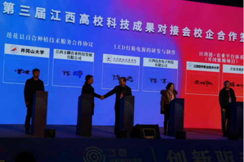 12月11日至12日,由教育部科技发展中心、江西省教育厅、江西省发展和改革委员会、江西省工业和信息化委员会、江西省科学技术厅等12家单位联合主办的第三届江西省高校科技成果对接会在南昌隆重举行。对接会以“创新驱动发展 科技对接产业”为主题。省委常委、省委宣传部部长、省委教育工作领导小组组长施小琳,省人大常委会副主任朱虹,副省长孙菊生,省政协副主席汤建人等出席开幕式。对接会期间,党委书记胡春晓,党委副书记、校长曾建平,党委常委 副校长陈小林以及科研处负责人、重点成果完成人前往现场宣介,创新创业学院以及有关学院分管科研副院长、部分科研人员到现场参观学习。开幕式上,校长曾建平代表学校签订了校企合作项目,签约金额为1078万元,位居此次签约项目单项金额第五位。