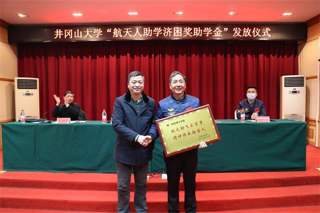 12月16日下午,学校举行“航天人助学济困奖助学金”发放仪式。南昌理工学院出资20万元在我校设立“航天人助学济困奖助学金”, 10名大学生每人获5000元“航天人助学济困奖学金”,50名大学生每人获3000元“航天人助学济困助学金”。学校党委常委、副校长胡永红出席仪式。受南昌理工学院校理事会理事长邱小林和校长傅修延委托,南昌理工学院国际飞行学院副院长袁长根,南昌理工学院国际飞行学院运控部部长魏永明出席仪式。胡永红代表学校向南昌理工学院赠送捐资荣誉锦牌,校领导和嘉宾为获资助学生颁发了资助款。