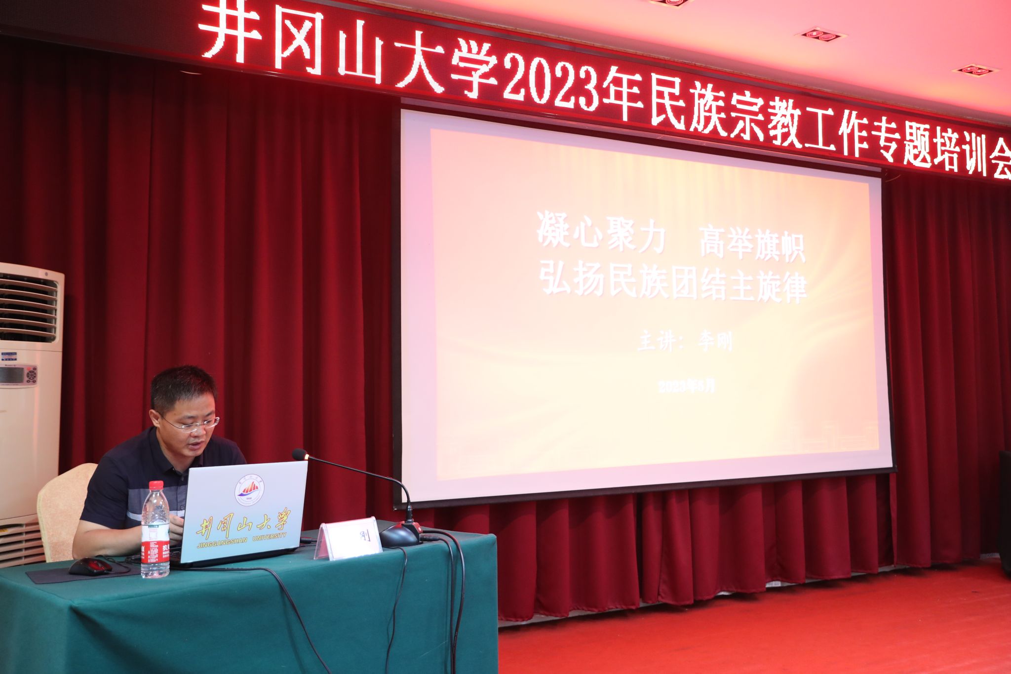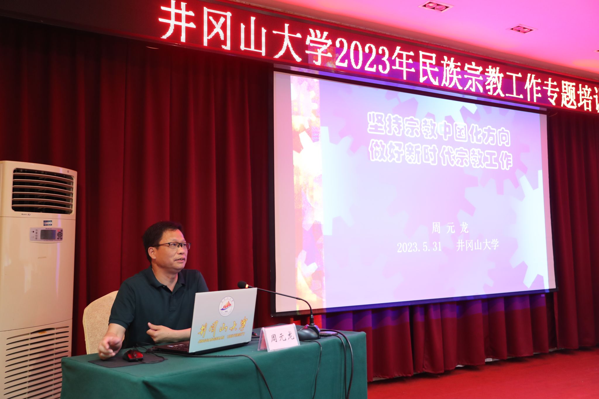 为学习贯彻党的二十大精神,落实中央、省委关于民族宗教工作的决策部署,学校于5月下旬开展了民族宗教工作专题培训,邀请了吉安市民族宗教事务服务中心副主任、民族宗教事务局副局长周元龙和学工处李刚老师分别作了专题讲座。校党委常委、统战部部长刘梁军主持培训会并提出了工作要求,学校各基层党委主要负责人、统战委员和各教学学院(部)的学生科科长、辅导员代表以及党委统战部成员近70人参加了培训。