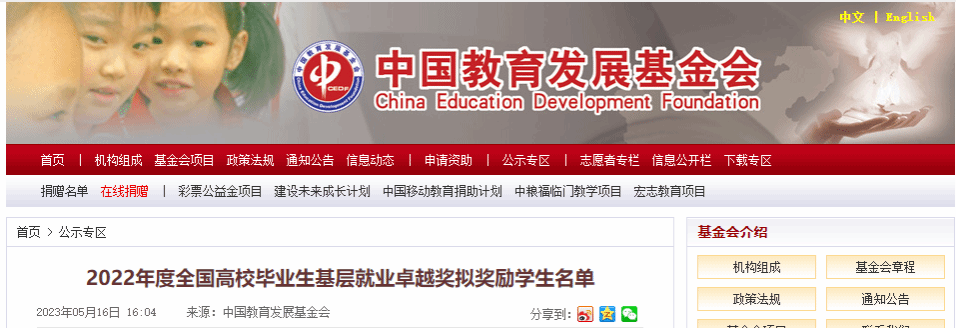 近日,中国教育发展基金会公布了《2022年度全国高校毕业生基层就业卓越奖拟奖励学生名单》,我校2017届毕业生邱建军入选。
