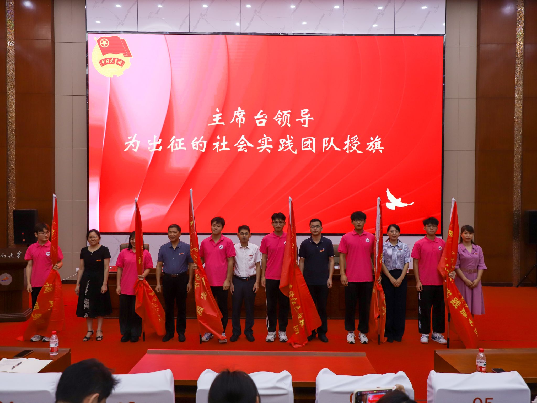 6月25日下午,学校举行2023年“红色走读”暨暑期“三下乡”社会实践、新时代文明实践活动出征仪式,党委常委、副校长刘利民,党委常委、宣传部长肖洪海出席并为出征的社会实践团队授旗,学校有关部门负责人出席并为社会实践团队授旗,各学院党委分管领导、学院团委负责人以及实践团队代表、社会实践志愿者代表共计200余人参加了仪式。