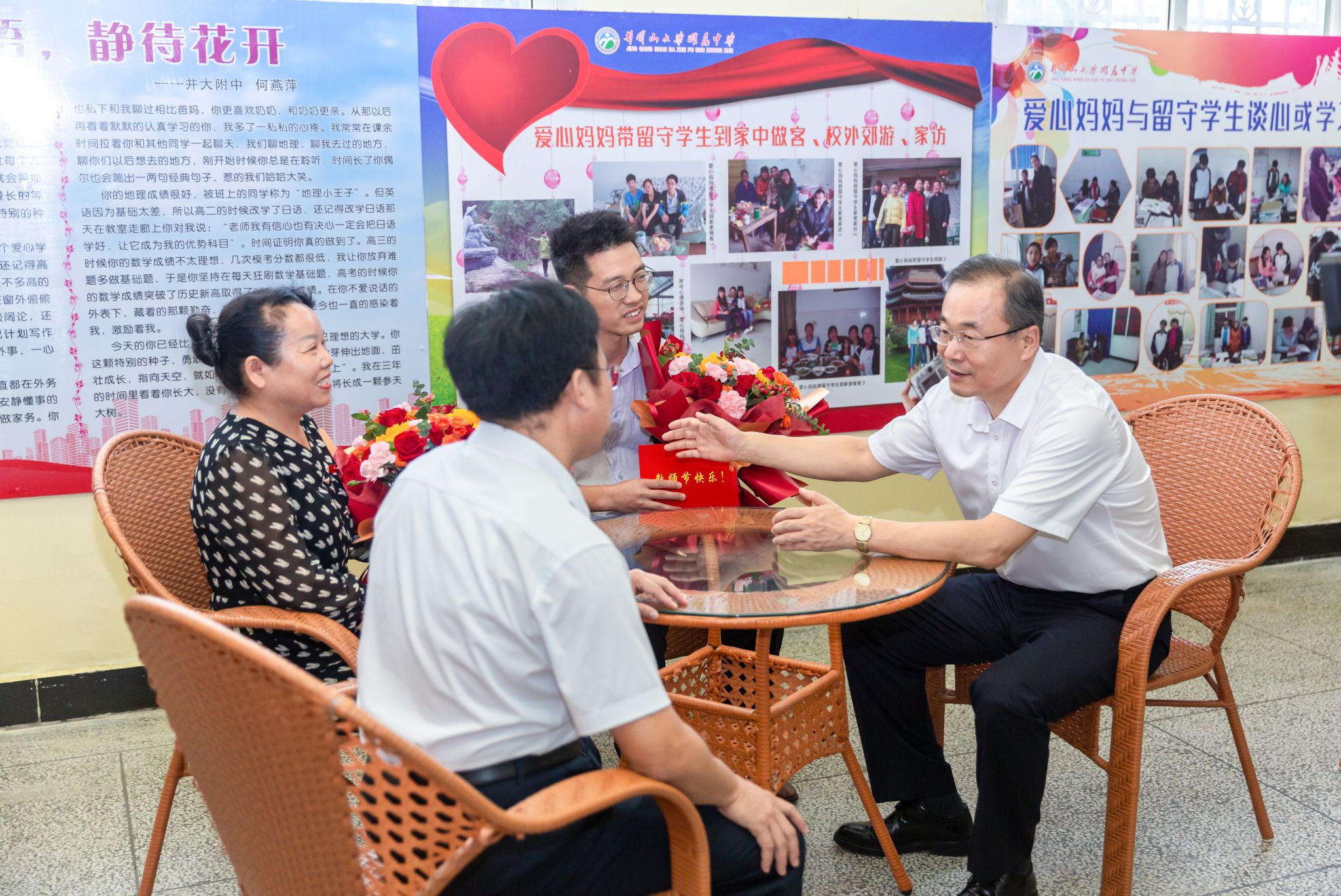 孙洪山来到井冈山大学附属中学,向王全花和廖寿顺两位老师赠送鲜花和慰问金,并和她们亲切交流。他深情回忆起了小学老师和中学老师对自己的点滴师恩,勉励他们发扬甘为人梯的蜡烛精神,在平凡的岗位上创造不凡的成绩。希望他们增强立德树人、教书育人的责任感,不断提高教学能力水平,履行好传道授业解惑的神圣职责,努力实现“三全育人”和“五育并举”,为学生系好人生“第一粒扣子”。孙洪山还参观了井大附中的名师风采展,听取了附中领导有关学校的情况汇报,深入学生食堂视察指导。孙洪山强调,井大附中要依托井冈山大学的师范类教育资源优势,引进优秀的师资和先进的管理理念、管理方法,加强一流专业一流课程特别是思政课程建设,进一步提升学校的教育教学质量。