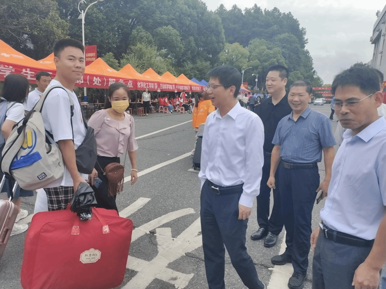 上午,校领导胡春晓、罗旭彪、肖宜安、刘利民、廖岚在学校各职能部门有关负责人的陪同下深入各学院迎新处,了解迎新工作情况。“你们辛苦啦,要帮助新同学融入校园生活,同时更要做好师兄师姐的表率!”校党委书记胡春晓慰问了各个学院的迎新志愿者,嘱托他们要把井大精神传递给新来的学弟学妹。校长罗旭彪在校门口迎接前来报到的新同学,亲切问候学生家长,并慰问现场工作人员。