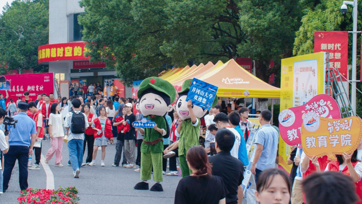校园内的迎新点上,各个学院的学长学姐们正在翘首盼望着萌新的到来,为吸引萌新的目光,他们准备了花样百出、心意满满的迎接仪式,各种吉祥物、奇宝纷纷出门,只为让萌新感受进入大学的仪式感。