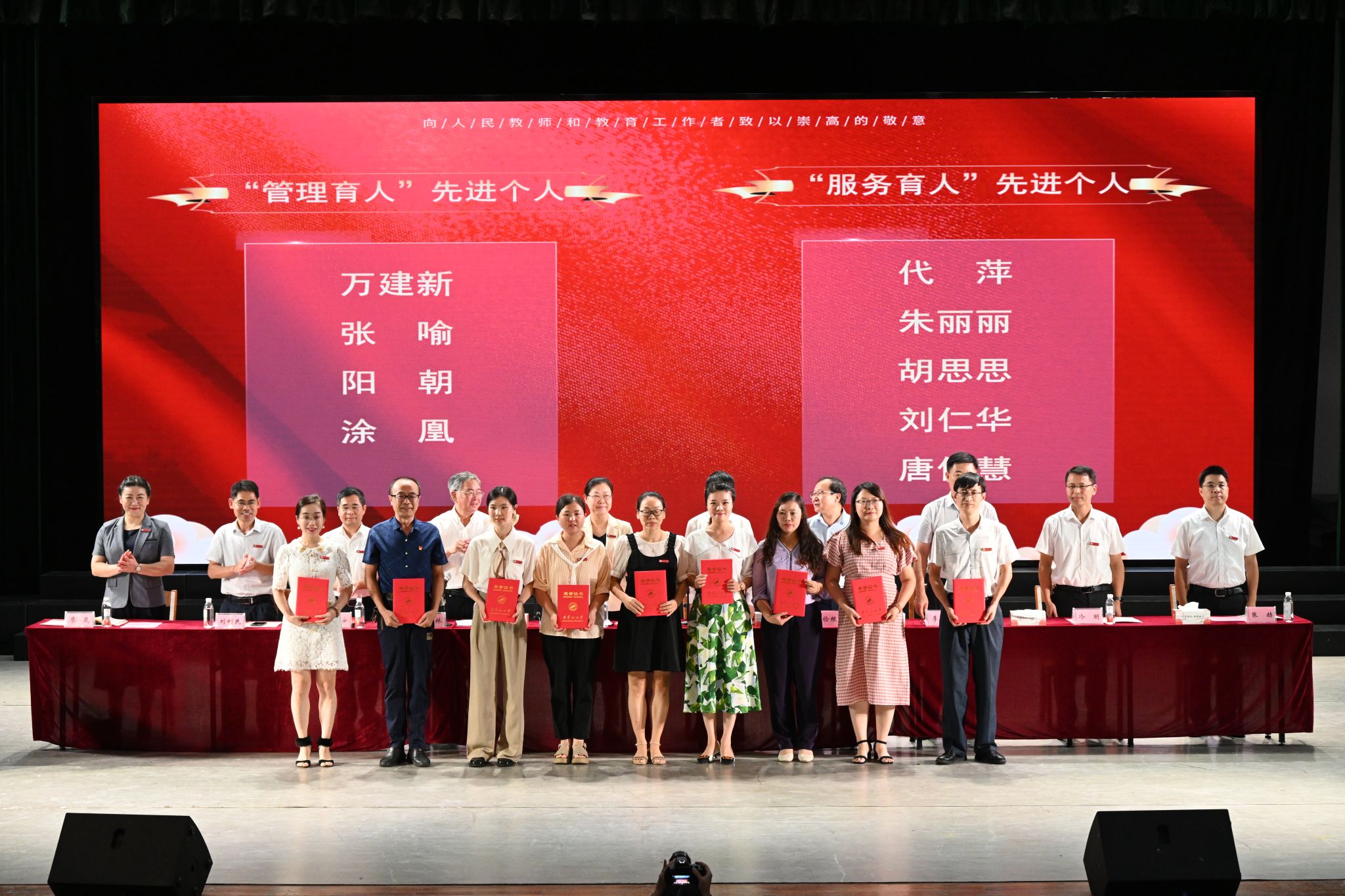 胡春晓代表学校党委、行政向在教书育人岗位上辛勤耕耘、默默奉献的全体教职工致以节日的问候,向长期以来关心支持学校事业发展的退休老教师致以崇高的敬意,向受到表彰的先进集体和个人表示热烈的祝贺,向各位新老师表示诚挚的欢迎。她指出,长期以来,我校广大教职工认真贯彻党的教育方针,忠诚党的教育事业,大力弘扬跨越时空的井冈山精神,在平凡的工作岗位上,坚持立德树人,潜心教书育人,切实担负起了培养具有井大特色、井冈特质、能堪重任时代新人的光荣使命,为建设教育强国、为实现中华民族伟大复兴提供了智力支持、贡献了井大力量。希望全校教师认真学习贯彻习近平总书记关于教育的重要论述,传承红色基因、赓续红色血脉、涵养高尚师德,不忘教育报国初心、勇担立德树人重任,积极投身人才培养实践。希望全校教师要坚定理想信念,增强躬耕教坛的定力;要坚守高尚师德,强化行为世范的引领;要提升育人本领,发挥强国有我的作为。胡春晓指出,在大家的共同努力下,学校各项事业发展正处于持续向上向好的发展态势,也为各位教师坚守本职岗位建功立业提供了良好的机遇。希望全校教师继续发扬敬业奉献、追求卓越的作风和为人师表、诲人不倦的教风,努力做好学生锤炼品格、学习知识、创新思维、奉献祖国的“引路人”,全校上下要共同珍惜和维护学校改革发展大局,团结奋斗,合力共为,奋力书写新时代革命老区高等教育高质量跨越式发展新篇章。(文:向琴 图:李琴、张芸榕、李君怡 审核:谢世坤、胡正佩)