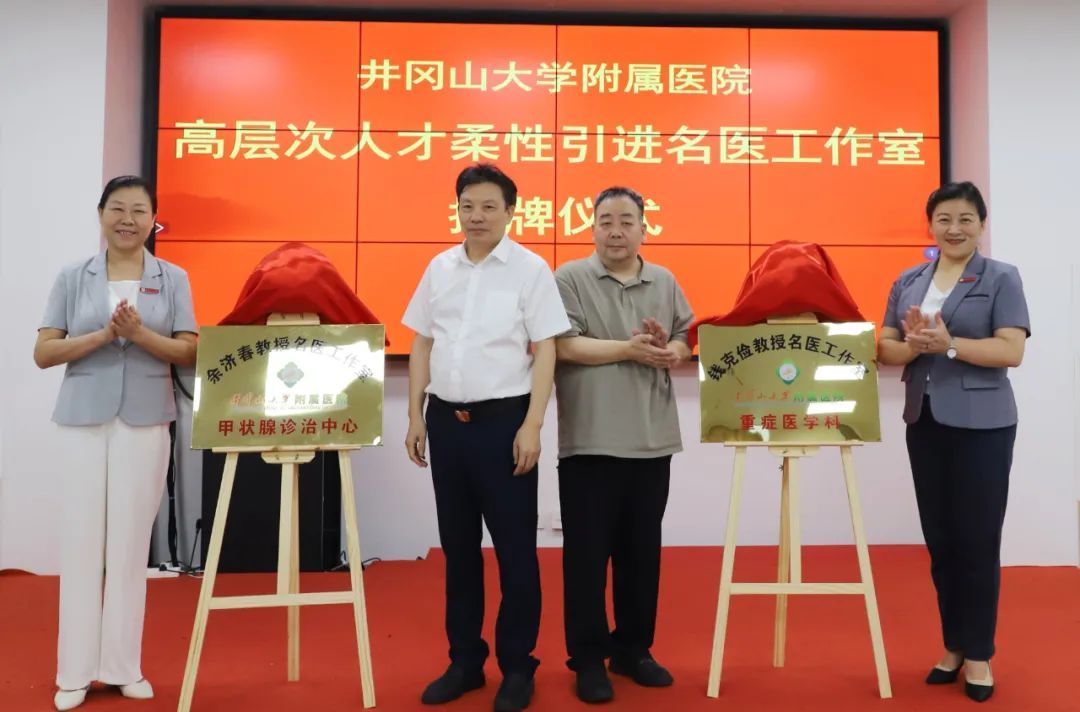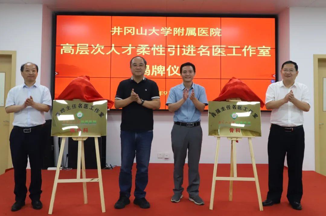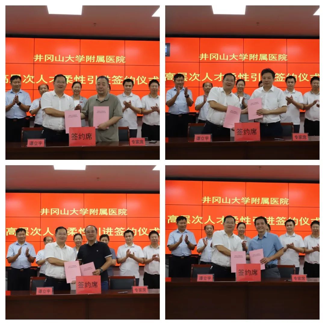 9月18日,井冈山大学附属医院举行高层次人才柔性引进签约暨名医工作室揭牌仪式,标志着医院正式柔性引进南大一附院重症医学科钱克俭教授、南大二附院甲状腺外科余济春教授、省人民医院胸外科章晔教授、骨科肖强教授。井冈山大学党委书记胡春晓出席并揭牌,校党委常委、副校长廖岚出席并讲话。