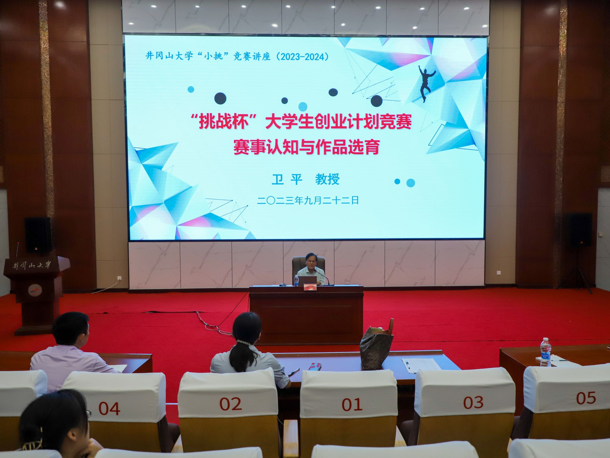 为深入贯彻党的二十大精神,加强对青年学生科学精神和科学态度的培养,提升青年学生的创新意识和创新能力,进一步做好“挑战杯”赛事的组织工作,9月22日晚,学校举办“挑战杯”工作推进会暨培训讲座,校党委常委、副校长刘利民出席作推进动员讲话,同时邀请了华中科技大学经济学院二级教授、博士生导师、教育部重大课题攻关项目首席专家、国家级创新创业导师卫平教授出席作专题讲座。各学院分管“挑战杯”工作领导、各学院团委书记和负责人、重点作品指导老师及学生代表近300人参加。