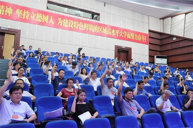 7月15日,学校召开第三届教职工代表大会第四次会议。143名正式代表出席会议,部分列席代表列席会议。党委书记胡春晓讲话,党委副书记、校长曾建平作学校工作报告,党委常委、副校长吕玉华、陈小林分别主持会议。在家的校领导史胜平、黄俭根出席会议。