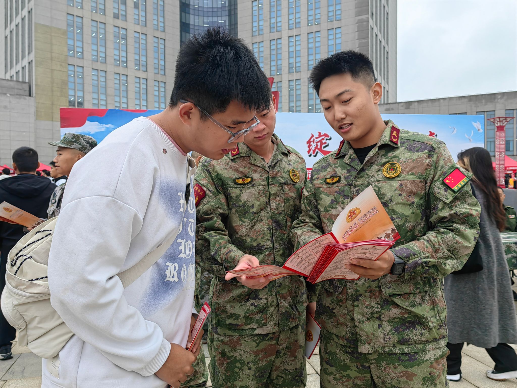 11月11日上午,由吉安市人民政府征兵办主办,吉州区、青原区人民政府征兵办和我校人武部承办的“携笔从戎、绽放青春”——2024年征兵宣传活动在校举行。校党委常委、副校长刘利民,青原区区委常委、武装部长王昭伟,吉州区区委常委、武装部长蒋国平以及我校人武部主要负责人来到活动现场,向大学生宣传入伍政策、答疑解惑。