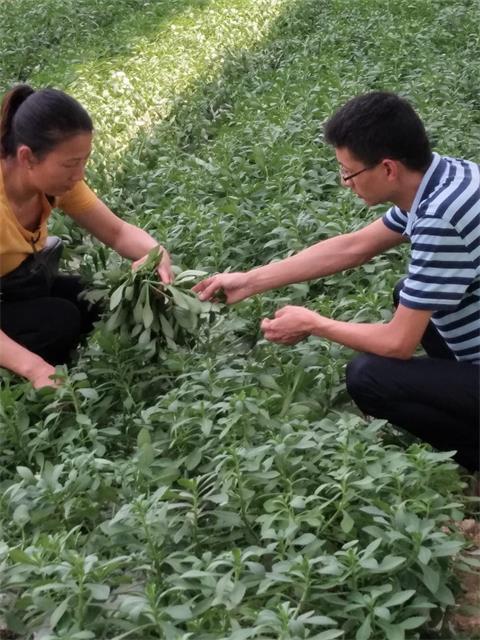 曾新华(右)在“农光互补”基地查看蔬菜长势情况