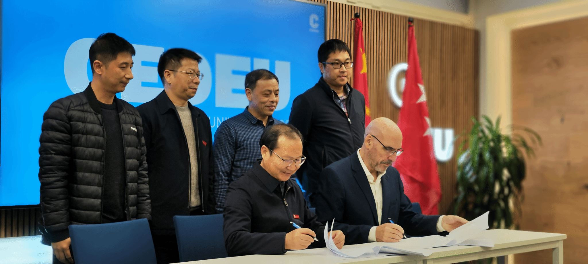 在西班牙胡安卡洛斯国外大学CEDEU学院,该院院长Adolfo sanchez Buron热情接待了代表团一行并开展座谈交流。座谈会上,双方介绍了学校的基本情况,并就西班牙语言与文化、商科等专业领域的学生交换、本升硕项目以及教师交流项目进行了商讨,达成了合作共识,并签订了两校合作协议。