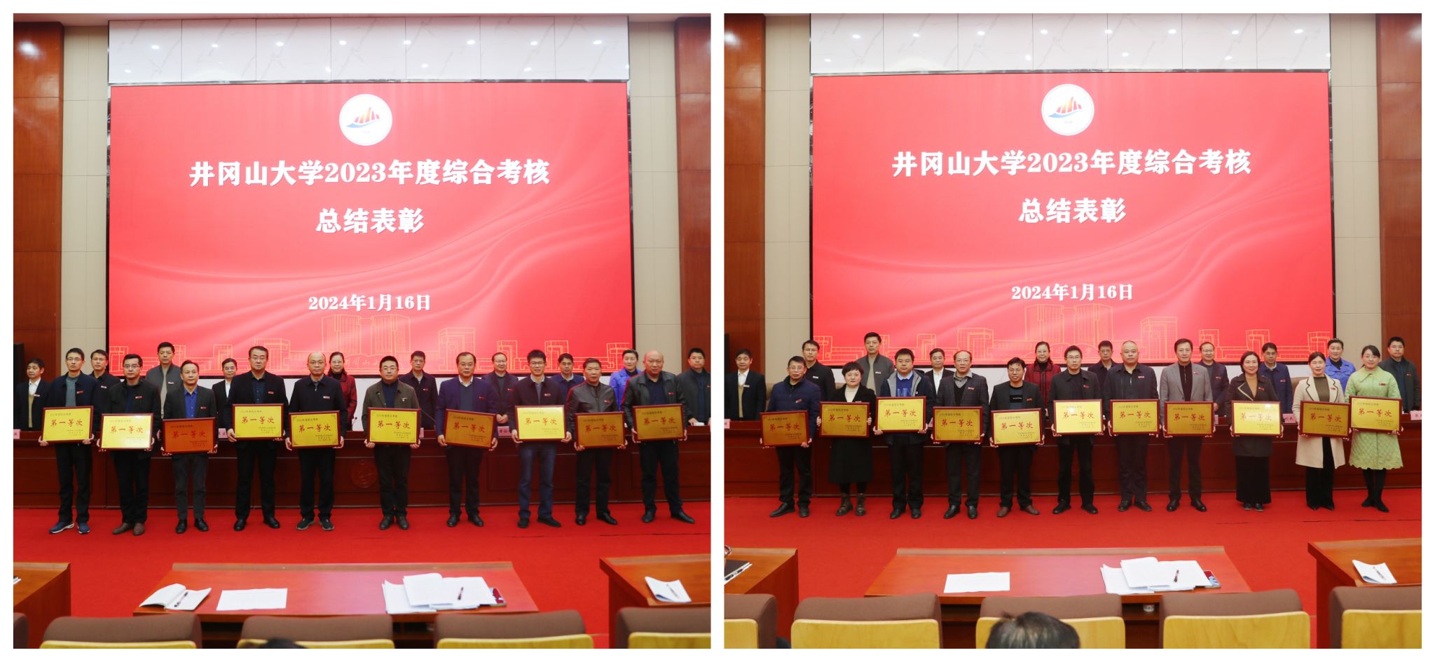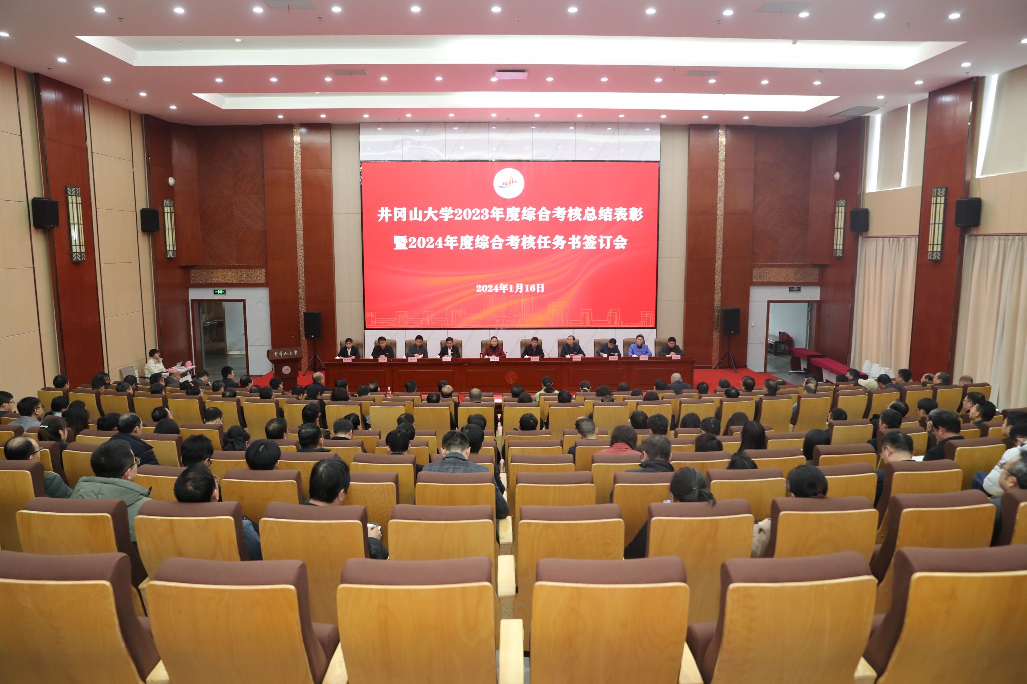 为全面总结2023年工作成绩、表彰先进,谋划2024年工作、凝聚力量、鼓舞士气,1月16日下午,学校召开2023年度综合考核总结表彰暨2024年度综合考核任务书签订会。校党委书记胡春晓出席并讲话,党委副书记、校长罗旭彪主持会议,党委副书记肖宜安就2024年校属各单位综合考核任务书的制定情况进行说明,校领导黄俭根、李军、刘利民、冷明、廖岚、彭西洪、张赫等出席会议,全校正、副处级干部,校综合考核办公室全体人员参加会议。