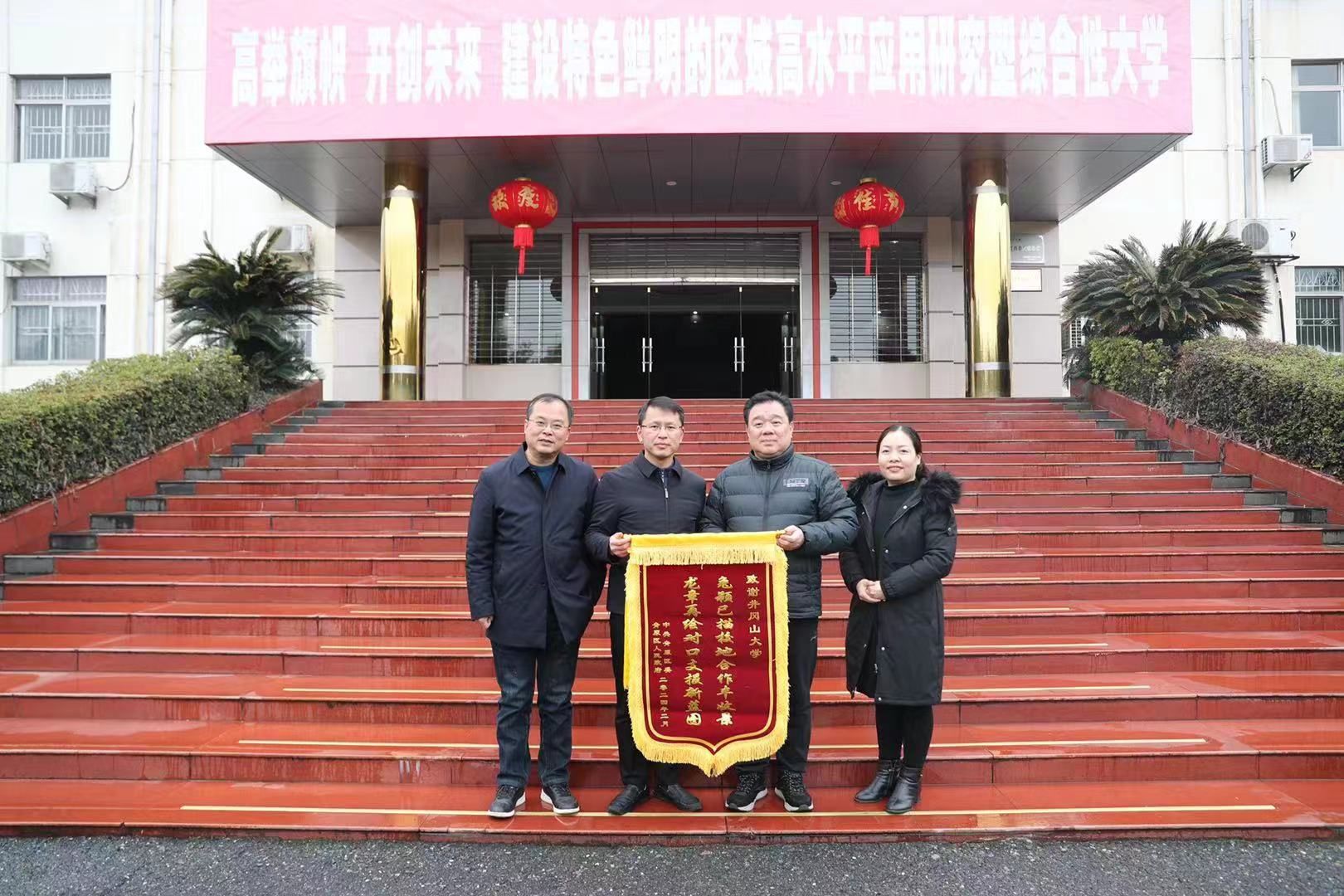 2月5日,青原区政协主席解芳云率有关部门负责人专程来校,代表青原区委区政府向学校赠送题为“兔颖已描校地合作丰收景,龙章再绘对口支援新蓝图”的锦旗。校党委常委、副校长冷明代表学校接受了锦旗。