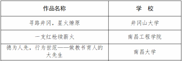 根植文化沃土,凝聚奋进力量。近日,教育部公布了2023年高校“礼敬中华优秀传统文化”宣传教育活动结果,其中,江西高校有10个作品入选。其中,《寻路井冈,星火燎原》入选2023年礼敬中华优秀传文化”宣传教育活动“红色家园”视频展览遴选名单;《毕业季》入选2023年高校“礼敬中华优秀传统文化”宣传教育活动“水墨校园”绘画联播遴选名单。