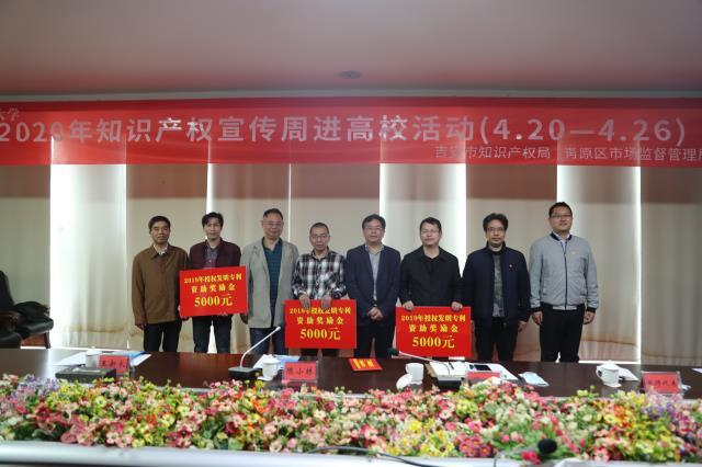 4月21日,由我校和吉安市知识产权局、青原区知识产权局联合举办的“知识产权宣传周进高校活动”在我校举行。党委常委、副校长陈小林出席座谈会并讲话,吉安市知识产权局、青原区知识产权局和我校科研处负责人分别介绍了各自知识产权相关情况。我校2019年发明专利授权的专利人李金忠、曹人平、孙心瑗、欧阳春娟在会上进行了交流发言。会上,青原区知识产权局为李金忠、曹人平、孙心瑗、欧阳春娟4人每人发放了2019年授权发明专利资助津贴5000元。