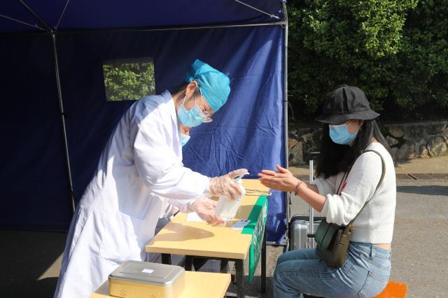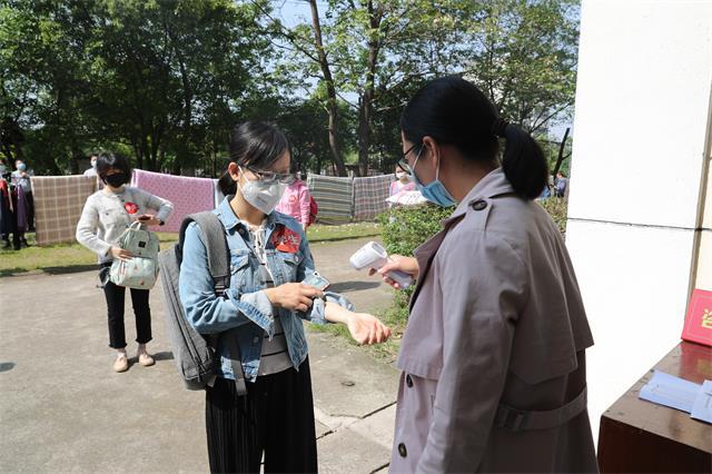 大学生进入宿舍前再次接受体温检测