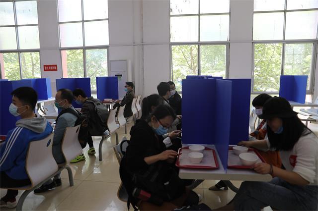 在第三食堂,体温检测、排队一米隔离线、分散就座等防控措施依然没有放松,食堂就餐环境整洁、安全、有序。随着学生返校,学校将逐步开放更多食堂。食堂将继续严格落实落细各项防控措施不松懈,学生进入食堂就餐时要接受体温检测,佩戴好口罩;用餐前要洗手;用餐时分散就座;合理安排用餐时间,错峰用餐;倡议师生打包带走、单独用餐;有发热、咳嗽等症状的同学,不得进入食堂就餐。