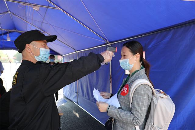 大学生在校门口接受体温检测